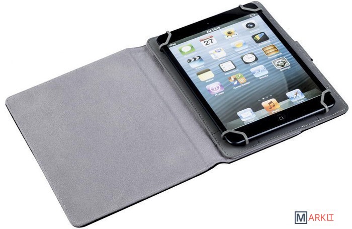 Универсальный чехол для планшетов до 8".Чехол выполнен с использованием различных материалов:- материал верха - высококачественная искусственная кожа;- внутренний материал контактирующий с тачскрином - микрофибра (мягкий велюр);- внутренний материал в зоне крепления (под планшетом) - нескользящая дорогая искусственная кожа.Запатентованная система крепления "4Sure" - универсальные зажимы из гибкого, прочного пластика на высококачественной эластичной ленте. Легко устанавливать и вынимать планшет.