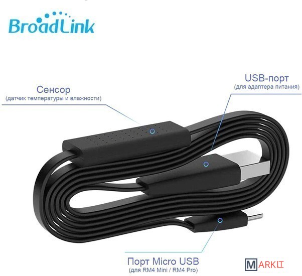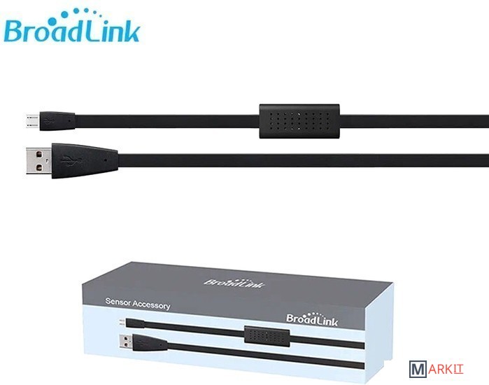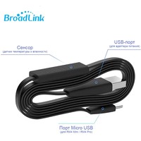 Для управления используйте новую программу "BroadLink " (приложение на русском языке).HTS2, внешний датчик под брендом BroadLink. Работает только с RM4 mini и RM4 Pro, показывает статус температуры и влажности в приложении, ведет историю измерений. Пользователи могут устанавливать триггеры для автоматизации.Датчик температуры и влажности работает только от пульта BroadLink RM4 mini и BroadLink Rm4 Pro.Датчик представляет из себя кабель с USB и Micro USB разъемами на концах;Точность измерения влажности: ± 5%;Точность измерения температуры: ± 1 °C;Измеряет температурный диапазон: -40 ℃ ~ 125 ℃;Рабочая влажность: 10% ~ 85%;Рабочая температура: 0 ° C ~ 50 °C;Макс выходное напряжение: 5V⎓1.0A;Макс мощность в режиме ожидания
