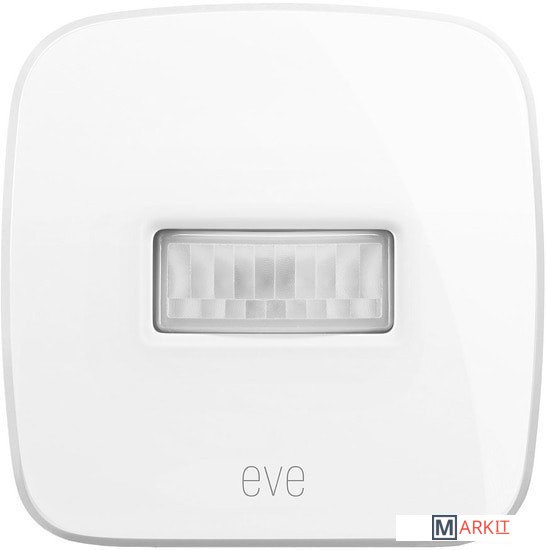 Датчик движения для Apple HomeKit.Диапазон рабочих температур составляет от -18 до +55 °C.Угол срабатывания сенсора составляет 120°. Дальность срабатывания – до 9 м с высоты установки 2 м.Чувствительность можно выставлять в три уровня через приложение Eve.