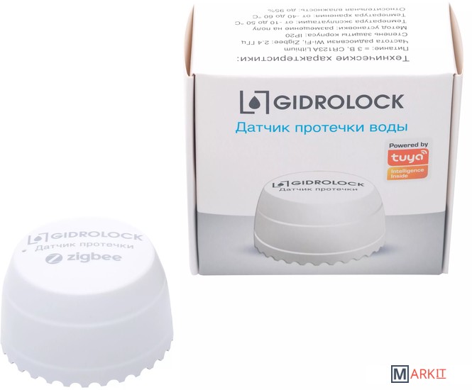 Беспроводной датчик протечки GIDROLOCK TYZ1 Zigbee предназначен для обнаружения утечки токопроводящих жидкостей (водопроводная вода, растворы солей и др.). При обнаружении протечки датчик начинает издавать звуковой и световой сигналы, передает сигнал аварии по радиоканалу Zigbee в сеть Интернет и извещает пользователя через мобильное приложение. Работает на платформе Tuya, с помощью мобильного приложения.Датчик протечки воды Zigbee можно подключить к мобильному устройству только через подключаемый к интернет шлюз Zigbee, который приобретается отдельно. Время работы на одном элементе питания: 1,5 года.Питание: = 3 В, CR123A LithiumТок покоя / тревоги: 10 мкА / 75 мАЧастота радиосвязи Zigbee: 2.4 ГГцСтепень защиты корпуса: IP20Метод установки: размещение на полуТемпература эксплуатации: от -10 °C до 50 °CТемпература хранения: от -40 °C до 60 °CОтносительная влажность: до 95%Время работы на одном элементе питания: 1,5 года.