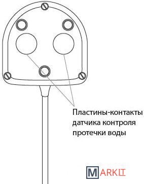 Датчик контроля протечки воды предназначен для выработки сигнала при попадании на него воды.Датчик подключен к безопасному источнику питания и не представляет опасности при прикосновении к пластинам-контактам.Степень защиты: IP67
