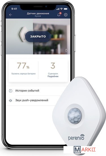 Инфракрасный датчик движения Perenio PECMS01 – это PIR-устройство, которое фиксирует перемещение тепловых объектов в зоне наблюдения и передает сигнал тревоги в центр управления Perenio. Дальность подключения датчика на открытых участках к центру управления зданием до 40 метров. При этом сектор сканирования составляет 110 градусов. Вы можете управлять прибором с помощью смартфона на Android и iOS, через мобильное приложение Perenio Smart.Датчик движения не может работать автономно, т.е. при обнаружении движения он не способен подавать звуковой сигнал, поэтому его работа организуется через отправку уведомлений на смартфон. А для этого необходим центр управления PEACG01.