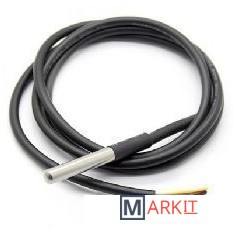 Проводной цифровой датчик температуры ZONT DS18В20 в металлической гильзе предназначен для измерения температуры теплоносителя системы отопления. Защищен от влаги. Не требует калибровки. Длина провода 1 м. Диапазон измеряемых температур: от -55 до +125 °C.Особенности подключения и использования:Подключаются в шлейф параллельно. Всего можно подключить до 10-ти шт.;Удаленность последнего датчика в шлейфе не может превышать 100 м.;Максимально допустимое расстояние датчика от шлейфа — 0,7 м.;Минимально допустимое расстояние между точками подключения датчиков в шлейфе — 0,2м.;Нельзя подключать датчики в одну точку; Нельзя прокладывать шлейф с датчиками в одном кабельном канале (или в непосредственной близости) с электропроводкой помещения;Датчики подвержены помехам, вызываемым неисправность люминесцентных и светодиодных светильников.Датчик трехпроводной, но подключается по двухпроводной схеме:Необходимо соединить вместе черный и красный провод и подключить их к минусовому проводу шлейфа, а желтый провод подключается к сигнальному (плюсовому) проводу шлейфа