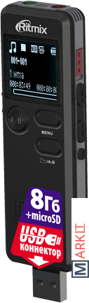 Ritmix RR-610 – это цифровой диктофон в сверхкомпактном узком корпусе с функцией музыкального плеера и FM-приёмника.RR-610 прост и удобен в управлении, запись производится в универсальном формате WAV, который не требует конвертации. Устройство оснащено функцией голосовой активации записи VOR. Данная функция позволяет начинать запись автоматически при обнаружении устройством каких-либо звуков. Имеется разъём для подключения внешнего микрофона.
