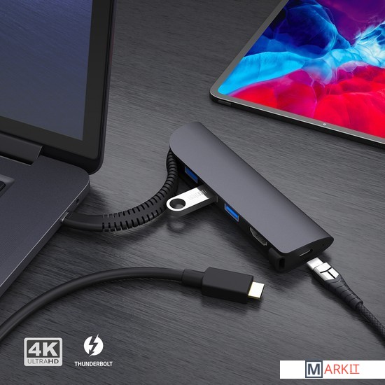 Основные особенности:- разъем USB Type-C с поддержкой протокола зарядки Power Delivery- три разъема USB Type-A со скоростью до 5 Гбит/с- разъем HDMI с поддержкой видеосигнала 3840х2160/30Гц или 1920х1080/60Гц