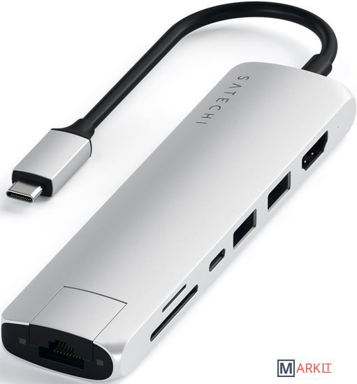 Возьмите свое рабочее место с собой в дорогу с ультрапортативным Satechi USB-C Slim Multi-Port with Ethernet Adapter. Он объединяет множество устройств в одно благодаря гигабитному сетевому разъему, поддержке видео 4K 60 Гц по HDMI, зарядке USB-C PD, двум портам USB-A 3.0 и устройствам для чтения карт памяти micro/SD.