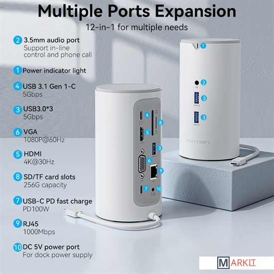 Markit » USB-хабы и док-станции » Док-станция Vention TPHWC-EU