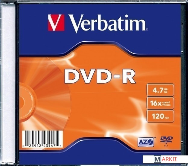 Markit » Оптические диски » DVD-R диск Verbatim 4.7Gb 16x 43547 (1 шт.)