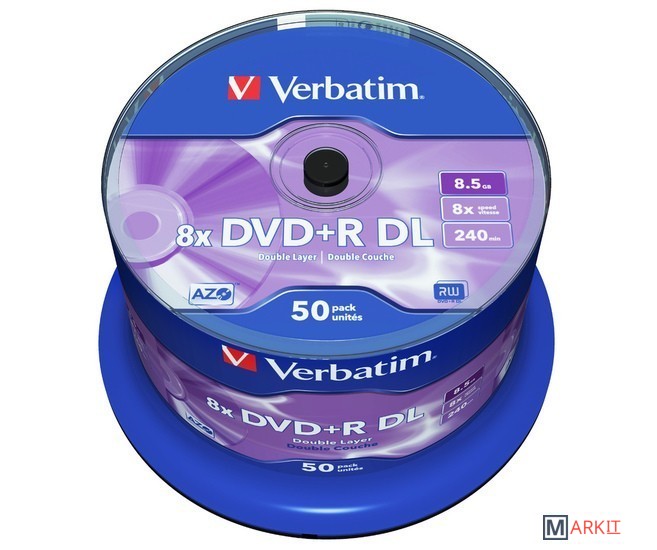 Markit » Оптические диски » DVD+R диск Verbatim 8.5Gb 8x 43758 (50 шт.)