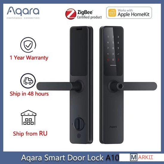 Aqara Door Lock A100 zigbee edition имеет немаркий алюминиевый корпус. Предупредит о попытке взлома и множестве неправильных попыток ввода пароля. У устройства невидимая клавиатура – чтобы её активировать, нужно дотронуться до сенсорной панели. А быстрый и эргономичный считыватель отпечатков пальцев встроен в ручку таким способом, чтобы ваш большой палец естественно касался его при открывании двери.Способы разблокировкиУдалённо через приложение Aqara HomeОтпечаток пальцаПостоянный парольОдноразовый парольВременный парольМеханический ключNFC-меткаЧерез HomeKitУстройством AppleПри помощи Apple Home KeyЧерез Google AssistantСовместимость и протоколы связиУстройство поддерживает два протокола: Zigbee 3.0 и Bluetooth. Через Zigbee вы сможете настраивать локальные автоматизации с устройствами Aqara. А с Bluetooth подключаться непосредственно к смартфону. А100 также работает с HomeKit и Google Assistant.Питание8 батареек типа АА хватит для работы устройства до 18 месяцев. В любом случае, А100 всегда напомнит о низком заряде заранее. Но даже если батареи сели, вы всё равно сможете открыть замок с помощью механического ключа или запитать его через порт Type-C.Размеры: 375 × 77 × 23,6 ммШирина двери: 40 – 80 ммМаксимальное количество пользователей: 50Максимальное количество NFC меток: 25.Вес нетто: 3,6 кг
