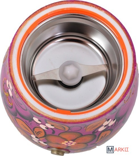 Помол кофе, круп, специй. Чаша и нож из нержавеющей стали. Частота вращения 2400 об/мин. Ручная художественная роспись.