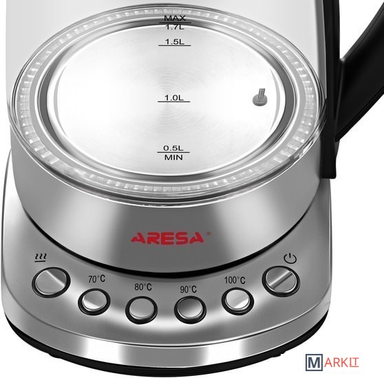 Чайник электрический ARESA AR-3460, объемом 1,7 л.– прибор который соответствует всем сертификационным нормам. Чайник ARESA AR-3460 прошел контроль в лаборатории при Министерстве Здравоохранения Республики Беларусь и не выделяет в воду вредных веществ. Модель может быть использована при приготовлении смесей для детского питания. Корпус чайника ARESA AR-3460, состоит из высококачественного боросиликатного закаленного стекла. Благодаря чему он не пожелтеет во время использования и прослужит долгие годы. Чайник ARESA AR-3460 оборудован высококачественным контроллером STRIX – системой, которая отвечает за отключения чайника при закипании. Этот контроллер позволит чайнику прослужить в 5 раз дольше, чем более дешевые аналоги. LED подсветка позволит четко контролировать процесс закипания и уровня воды в приборе. Чайник ARESA AR-3460 обладает регулировкой температуры на платформе изделия. 4 ступени регулировки (70, 80, 90, 100) позволят добиться необходимой температуры быстро и качественно. ARESA – белорусский бренд бытовой техники. Наша техника проходит сертификацию на территории Республики Беларусь в едином центре ГОССТАНДАРТА. Кроме сертификатов таможенного союза, полученных на территории Республики Беларусь, техника ARESA соответствует всем нормам сертификации Европейского Союза и поставляется на его территорию. Приобретая нашу технику, вы заботитесь о здоровье и безопасности вас и ваших близких.