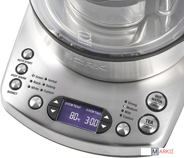 Заваривание и кипячениеУмный чайник не только нагревает воду до заданной температуры, но и заваривает чай с помощью автоматического опускания корзины5 температурных режимовЧайник K810 оснащен 5 температурными режимами и 3 режимами крепости заваривания для раскрытия вкуса каждого сорта чая.Отложенный старт до 24 часовМодель самостоятельно вскипятит воду и заварит любимый чай к заданному времени.Поддержание температурыПосле окончания цикла заваривания или кипячения чайник поддержит температуру воды в течение 1 часа.Стиль и безопасностьКорпус чайника изготовлен из немецкого термостойкого стекла Schott Duran, не содержащего примеси и посторонние компоненты.