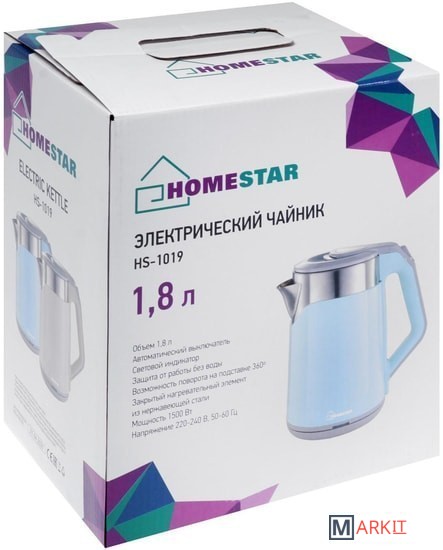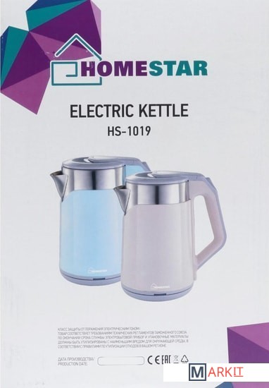 Markit » Электрочайники и термопоты » Электрический чайник HomeStar HS-1019 (стальной/голубой)