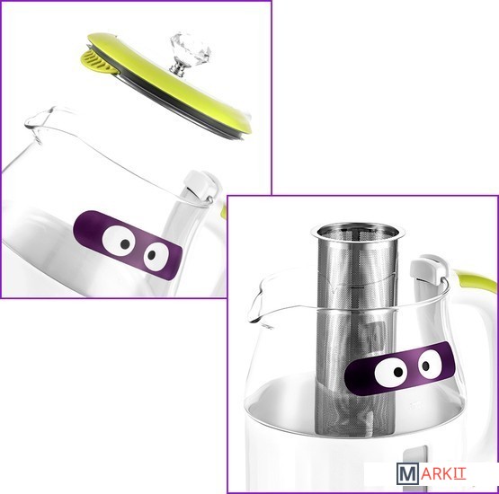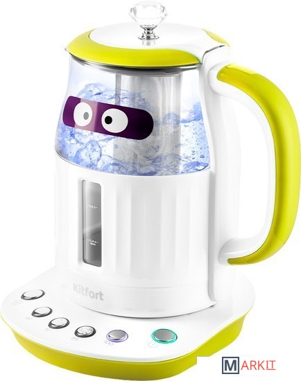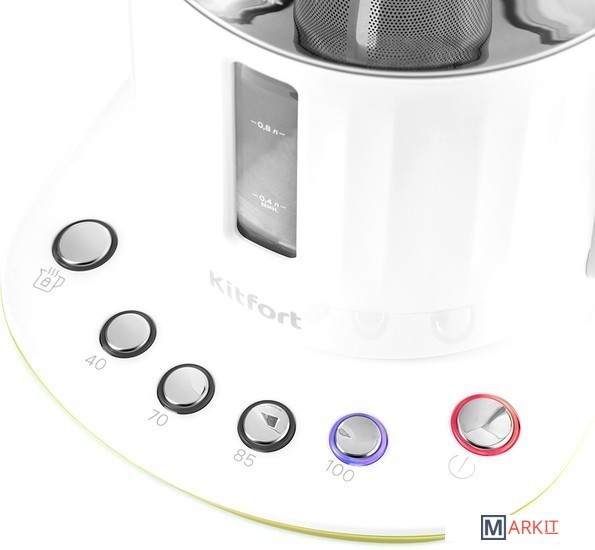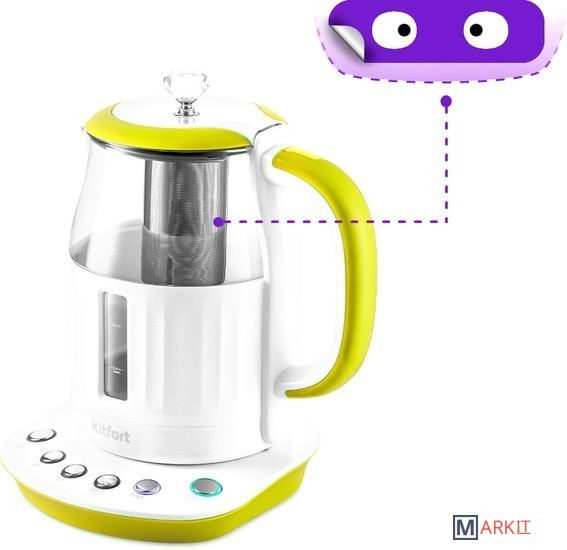 Электрический чайник Kitfort КТ-6129 может не только вскипятить воду, но и нагреть её до температур: 40, 70, 85 и 100°С, что очень удобно при заваривании различных сортов чая. У чайника есть функция поддержания температуры в течение 2 часов.Благодаря панели управления с 4 температурными режимами вы можете установить необходимую температуру для каждого сорта чая. Температура 40 °С пригодится для приготовления детского питания.В чайнике есть фильтр для заварки. Вам нужно только засыпать чайные листья в фильтр и залить воду. Чайник сам нагреет воду до нужной температуры и заварит чай в соответствии с выбранным сортом чая.Крышка чайника полностью съёмная. Это удобно для залива воды и очистки чайника. Фильтр крепится к крышке и легко моется после использования.Чайник КТ-6129 моментально притягивает взгляды, и это неудивительно, ведь ручка крышки чайника выполнена в виде бриллианта.Наша техника порадует вас не только своим функционалом, но и интересным дизайном! В любой момент вы можете отклеить креативный стикер без вреда для поверхности.