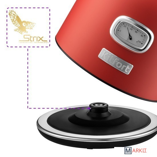 Мощный и вместительный чайник Kitfort KT-6150 подойдёт для особых встреч с семьёй и друзьями. А лаконичный винтажный дизайн придётся по душе любой хозяйке, и отлично впишется в ваш интерьер.Благодаря стильному термометру в винтажном исполнении вы сможете правильно заварить напитки, для которых требуется определённая температура воды. Например, зелёный чай, белый чай или другие напитки.За один раз в чайнике можно вскипятить до 1,7 л воды. Этого хватит, чтобы приготовить горячие напитки на большую семью! Мерная шкала позволяет легко следить за уровнем воды.Современная конструкция чайника препятствует образованию накипи, облегчает уход, значительно снижает шум при нагревании воды. В носике чайника расположен съёмный фильтр от накипи, который задерживает частички накипи и предотвращает их попадание в чашку.Чайник оснащён контроллером Strix - № 1 среди поставщиков компонентов для электрочайников. Он устраняет риски короткого замыкания и возгорания прибора. Обеспечивает защиту при закипании, при включении чайника без воды.