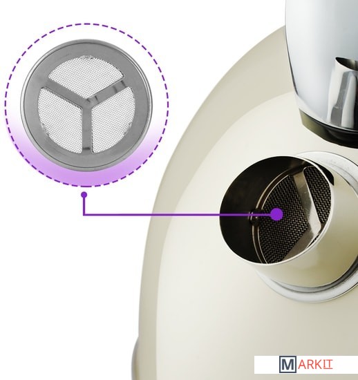 В носике чайника расположен съёмный фильтр, который задерживает частички накипи и предотвращает их попадание в чашку.Чайник оснащён контроллером Strix. Он устраняет риски короткого замыкания и возгорания прибора. Обеспечивает защиту при закипании, при включении чайника без воды и при снятии с базы во время работы.