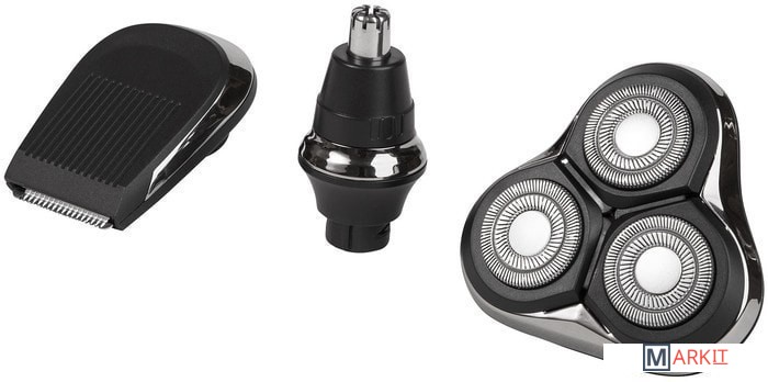 Роторная бритва + 2 триммера:1. 4D плавающие лезвия.Стабильное и плавное бритье каждый раз. Подвижная бритвенная головка легче скользит и лучше выбривает сложные участки. Такую бритву менее плотно нужно прижимать к лицу. Без риска получить микропорезы кожи.2. Триммер для контуров бороды.Для ежедневного ухода за правильной формой. Насадка-триммер может очень многое: поддерживать эффект «трехдневной щетины», ухаживать за бородой, придать форму вискам, даже освежить короткую стрижку.3. Насадка для стрижки волос, носа и ушей.Простое и комфортное избавление от нежелательных волосков в носу и ушах. Триммер для носа и ушей гарантирует максимальный комфорт, быстрое и удобное подравнивание без выдергивания волосков.