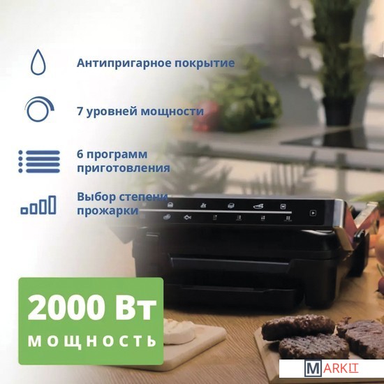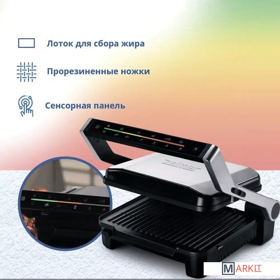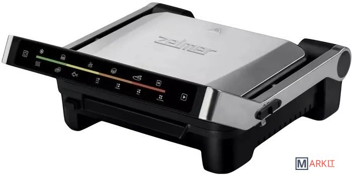 Электрогриль Zelmer ZPR2600 мощностью 2000 Вт легко переносить с места на место, готовить на открытом воздухе или дома, главное чтобы рядом была розетка.У пластин есть антипригарное покрытие их будет легче чистить после использоваться, а рифленая форма поверхности придаст продуктам характерный рисунок.Вам будут доступны 6 программ приготовления: Гамбургер, Курица, Сэндвич, Колбаса, Мясо и Рыба, или вы всё можете сделать в ручном режиме.Для ценителей гриля есть сенсорный переключатель режимов приготовления: rare, medium, well and well done.Съемные антипригарные пластины можно мыть в посудомоечной машине. Поверхность плит: 292х230мм. Вертикальное хранение для экономии места. Есть лоток для сбора жира. Конструкция ручки сделана таким образом, что она не нагревается и вы моете безопасно прикасаться к ней в процессе готовки, поднимать крышку чтобы перевернуть или подвинуть продукты.