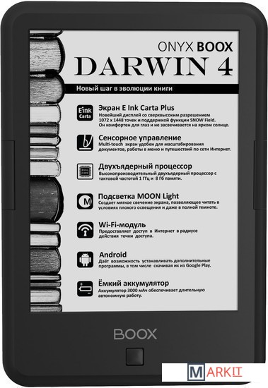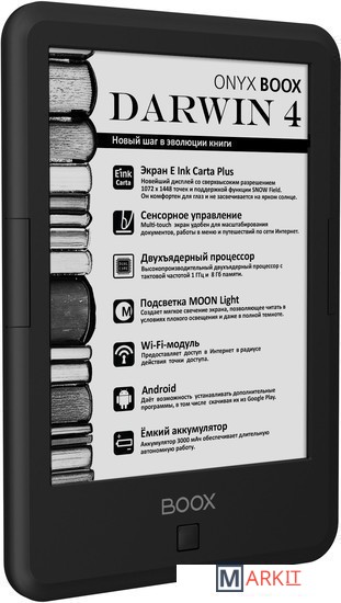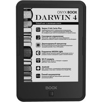 ONYX BOOX Darwin 4 — это устройство для чтения электронных книг с экраном последнего поколения E Ink Carta Plus, имеющим более высокие разрешение и контрастность, функцией SNOW Field и встроенной системой подсветки MOON Light.