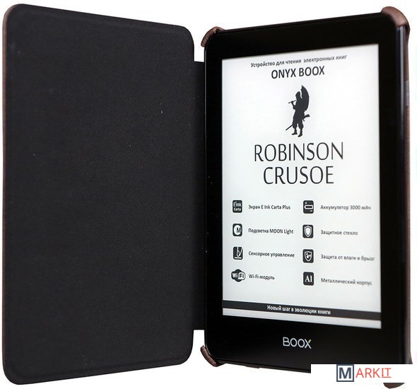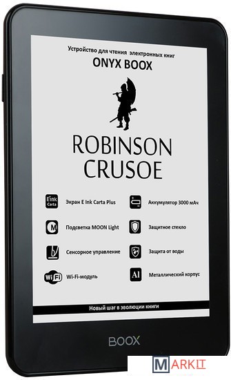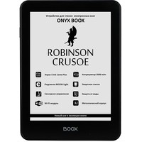 ONYX BOOX Robinson Crusoe — устройство для чтения электронных книг премиального уровня, оборудованное экраном последнего поколения E Ink Carta Plus с подсветкой MOON Light и имеющее защиту от брызг и влаги. Модель выполнена из высококачественных материалов, имеет тонкий корпус из алюминиевого сплава и защитное стекло ASAHI.