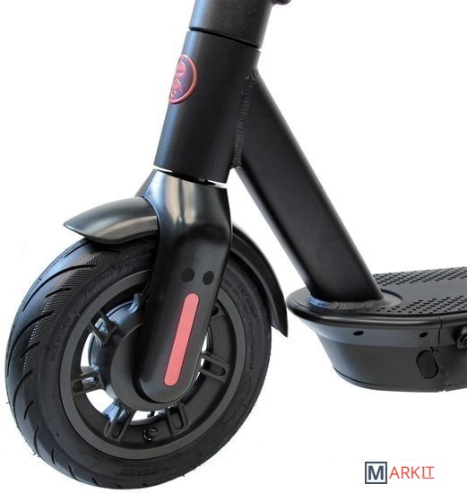 Электросамокат Hoverbot Ace Max - складной городской электросамокат, предназначенный для длительных поездок.Мощность мотора 350W, максимальная скорость может достигать до 30 км/ч. В деке установлен аккумулятор ёмкостью 15Ah, благодаря чему максимальная дистанция, которую электросамокат может проехать на одном заряде - до 50 км. Надувные колеса размером 10 дюймов обеспечивают плавность хода. Тормозная система: барабанный тормоз спереди и электронный тормоз сзади. Управление функциями электросамоката осуществляется кнопкой на панели управления, расположенной на руле, и с помощью фирменного приложения. С помощью приложения пользователь может выбирать комфортный для себя режим езды, регулировать максимальную скорость, отслеживать уровень заряда и пройденную дистанцию, а так же блокировать электросамокат.