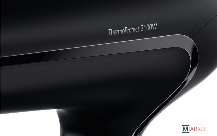 Фен мощностью 2100 Вт для создания объемной укладки, как в салоне красотыЭтот профессиональный фен мощностью 2100 Вт создает мощный поток воздуха. Удачное сочетание мощности и скорости помогает сократить время сушки и облегчить создание укладки.Температурная настройка ThermoProtectТехнология ThermoProtect обеспечивает оптимальную температуру сушки волос и их дополнительную защиту от перегрева. Превосходные результаты достигаются при той же мощности воздушного потока, но более щадящим способом.