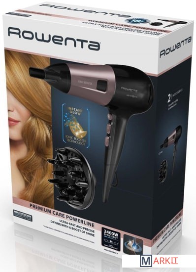 Фен Rowenta Powerline ухаживает за волосами в процессе сушки и помогает создавать безупречную укладку день за днем. Технология ионизации Ionic Booster снимает статическое электричество, разглаживает волосы и делает их послушными, придавая вашей прическе ухоженный вид и благородный блеск. Фен оснащен DC-мотором с технологией Effiwatts, который гарантирует высокую эффективность работы при сниженном потреблении электроэнергии. 6 настроек скорости и температуры позволяют регулировать воздушный поток в зависимости от типа волос и укладки. Режим Advanced Care защищает волосы от пересушивания и возвращает им здоровый вид, а поток холодного воздуха помогает закрепить получившуюся прическу надолго. Фен Rowenta Powerline – ваш идеальный фен для качественного ухода за волосами.