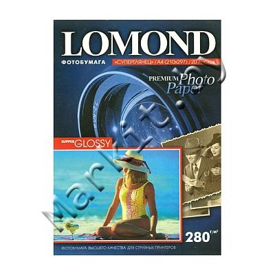 Фотобумага Lomond (1104101) A4 280 г/м2 суперглянцевая тепло-белая, односторонняя, 20 листов Код: 3436