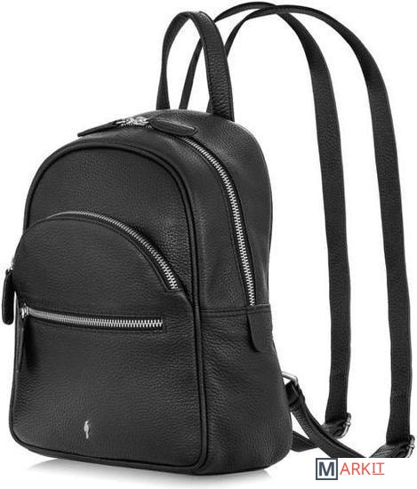Женский рюкзак из натуральной мелкозернистой кожи матовой отделки. Модель с двумя внутренними карманами в основном отделении и одним внешним. Закрывается на двойные молнии для большего удобства использования. Предусмотрена ручка сверху для ношения в руках при необходимости. Фурнитура металлическая серебристая. Удобное боковое направление держателей лямок снизу рюкзака - более комфортное ношение. Максимальная длина лямки - 110 см, регулируется.