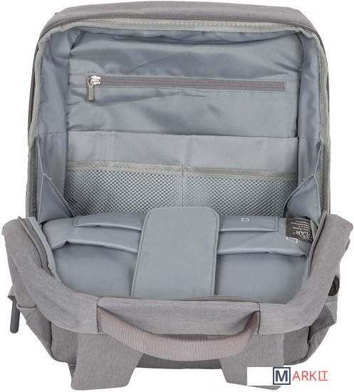 На спинке рюкзака расположен потайной карман для денег, билетов или документов для большей сохранности. Также на спинке пришита лента, с помощью которой удобно крепить рюкзак на выдвижной ручке чемодана, а это дополнительный комфорт для путешественников. Светоотражатель на передней стенке обеспечит дополнительную безопасность в темное время суток. Рюкзак выполнен из прочного водонепроницаемого материала. У рюкзака очень удобная ручка для переноски и эргономичные лямки, регулируемые по длине.