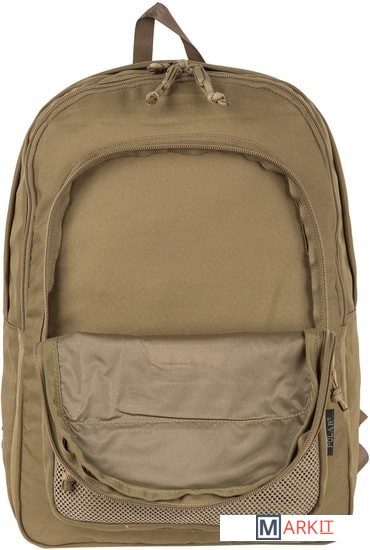 Рюкзак имеет два основных отделения, одно из которых закрывается на двухстороннюю молнию. Внутри первого есть открытый карман, во втором – небольшой открытый кармашек и организационная панель. Спереди рюкзака также есть вместительный накладной карман на молнии и кармашек с сетчатой вставкой. Широкие лямки анатомической формы регулируются для большего комфорта. У рюкзака жесткая ортопедическая спинка .