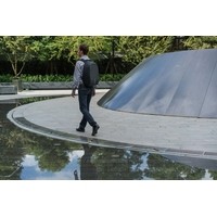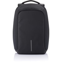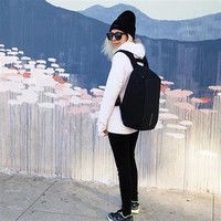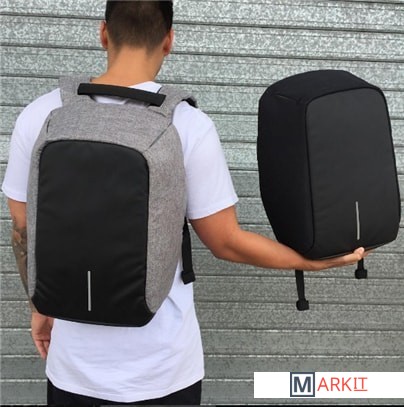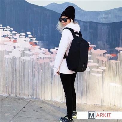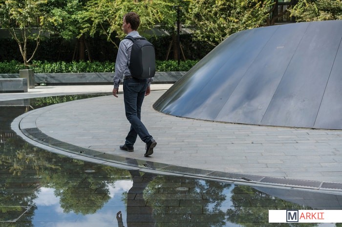 На правой лямке находится потайной карман для хранения банковских и транспортных карт, который оснащен RFID-защитой. Материал данного рюкзака водоотталкивающий с защитой от порезов. На корпусе рюкзака есть USB-порт для зарядки.