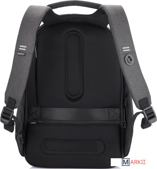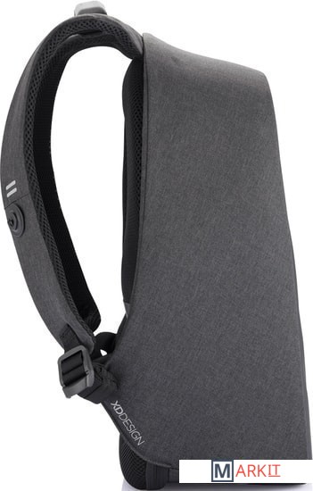 Оснащен двумя портами для зарядки портативных устройств (USB Type-A, USB Type-C), брелком-рулеткой для ключей, пластиной от прорезаний, а также системой Fid Lock для крепления смартфона или бутылки с водой на лямке рюкзака (в комплект поставки входит специальный чехол-держатель для смартфона и крепление для бутылки).