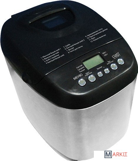 | Перечень режимов работы | белый хлебвареньезамес тестакекссладкая выпечкаускоренная выпечка из готовой смесифранцузский хлебцельнозерновой хлеб |