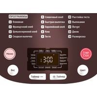 | Регулировка веса выпечки | (500/750/1000 г) |