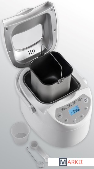 Комплект поставки - мерный стакан; - мерная ложка; - мешалка для теста; - крюк для извлечения мешалки для теста; - книга рецептов.