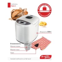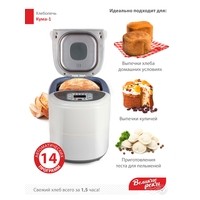 | Перечень режимов работы | десертная выпечка / 1. Обычный2. Сладкий/Кулич3. Французский4. Цельнозерновой5. Супер-быстрый6. Диетический7. Мультизерновой8. Тостовый9. Кекс10. Замес11. Ферментация12. Джем13. Выпекание14. Йогурт |