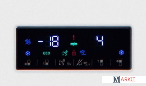 суперзаморозка, суперохлаждение, независимая регулировка температуры, ECO, отпуск, сигнал открытой двери, блокировка от детей |