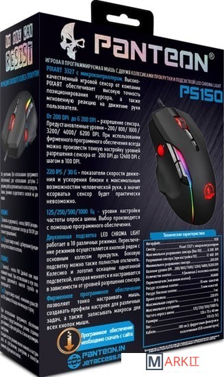 Ножки выполнены из тефлона высочайшего качества, тщательно обработаны, края скруглены, без всяких неровностей и заусенцев, поэтому мышь скользит как по маслу.По умолчанию (без использования программного обеспечения) для использования доступны 2 режима работы дополнительного колеса прокрутки.Смена режимов осуществляется кнопкой на дне мыши. Режим 1:3 (нажать и удерживать) - кнопка SNIPER (мгновенное понижение разрешения сенсора до 500 DPI для точного прицеливания).1 и 2 (скролл вверх и вниз) - дублирование функции прокрутки основного колесика.Режим 2:3 (нажать) - кнопка FIRE (двойной клик левой клавишей мыши). При использовании в игре пока кнопка удерживается нажатой стрельба не прекращается.1 и 2 (скролл вверх и вниз) - изменение уровня DPI на 100 единиц в большую или меньшую сторону.При использовании программного обеспечения доступны 4 предустановленных режима, созданных для гейминга, офисной работы, а также мультимедийный режим.Каждый из этих режимов можно изменять и настраивать по собственному усмотрению и полностью изменять функционал кнопок.