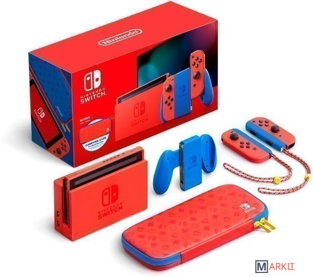 • консоль Nintendo Switch;• Joy-Con (левый) и Joy-Con (правый);• док-станция Nintendo Switch;• держатель Joy-Con;• 2 ремешка для фиксации Joy-Con на руках;• чехол и защитная пленка;• HDMI-кабель;• блок питания.