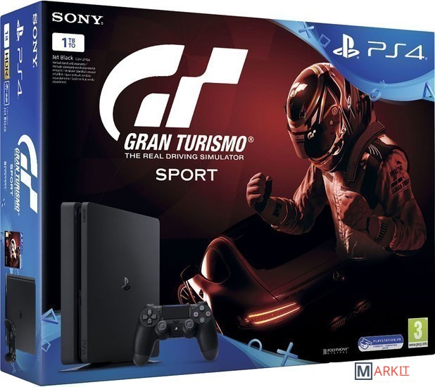 • Консоль PlayStation 4 Slim• Беспроводной геймпад Dual Shock 4• Моногарнитура• Кабель питания• HDMI-кабель• USB-кабель• PS Plus 14 дней• Игра Gran Turismo SportВертикальная подставка в комплект не входит!