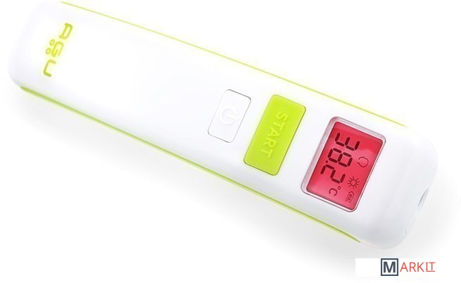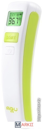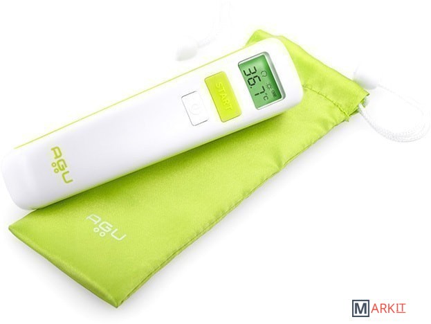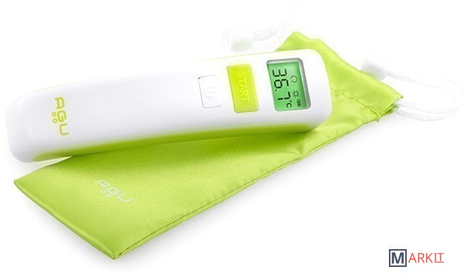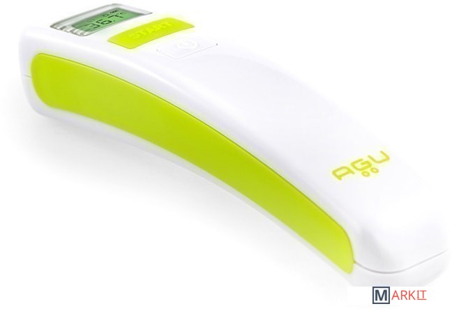 Бесконтактный термометр AGU измеряет температуру, не касаясь ребенка. Требуется 1 секунда для проведения измерения с точностью ± 0,2 ºC. Прибор сигнализирует об окончании измерения, особый сигнал подается в случае, если температура выше нормы. При помощи прибора можно измерять также температуру поверхностей и жидкостей.