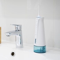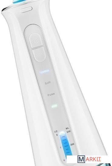 Во время работы у ирригатора подсвечивается резервуар для воды.Размер устройства: 73.2 x 73.2 x 204 мм.Вес: 0.4 кг.