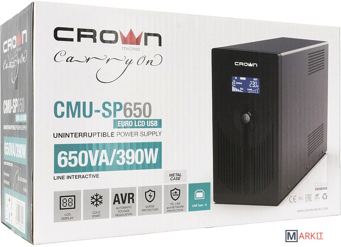 Markit » Источники бесперебойного питания » Источник бесперебойного питания CrownMicro CMU-SP650 Euro LCD USB