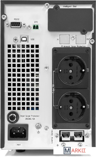 ИБП с двойным преобразованием напольного исполнения 1000 ВА / 800 Вт без встроенных АКБ, ЗУ 10А напряжение АКБ 24 VDC (2 АКБ), 2 розетки Schuko, SNMP слот, USB, RS232, EPO