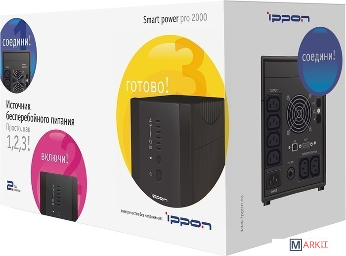 Источники бесперебойного питания (UPS) серии Smart Power Pro предназначены для защиты персональных компьютеров, рабочих станций, серверов и другого важного компьютерного оборудования от основных неполадок с электропитанием: высоковольтных выбросов, электромагнитных и радиочастотных помех, понижений, повышений и полного исчезновения напряжения в электросети. Если необходимо заменить батарею, то индикатор на лицевой панели напомнит Вам об этом. Также данные ИБП (UPS) имеют функцию циклического самотестирования.Все ИБП (UPS) серии Smart Power Pro комплектуются программным обеспечением на CD, благодаря которому на экране монитора отображаются такие диагностические симптомы, как напряжение, частота, уровень заряда аккумулятора, уровень нагрузки и т. п. Программное обеспечение имеется для Windows 95/98/ME/NT/2000 (Windows XP для некоторых языков), Linux 7.0. В комплект каждого ИБП (UPS) входят телефонный шнур и кабели для USB порта и интерфейса RS-232.* При подключении ИБП к сети вентилятор работает постоянно.Рекомендуются для обеспечения бесперебойной работы и защиты данных:- нескольких персональных компьютеров и рабочих станций;- серверов начального уровня;периферийной компьютерной и вычислительной техники;- любого телекоммуникационного оборудования (офисные АТС, роутеры, маршрутизаторы, модемы и т.п.).
