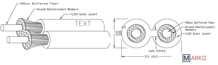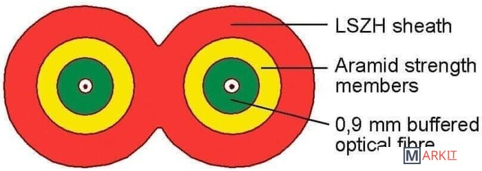 Двойной оптоволоконный кабель, 50/125 OM2.Максимальная потеря 3.5/1.5 дб/км (850/1300 нм).Пропускная способность 750/2000 (850/1300 нм).