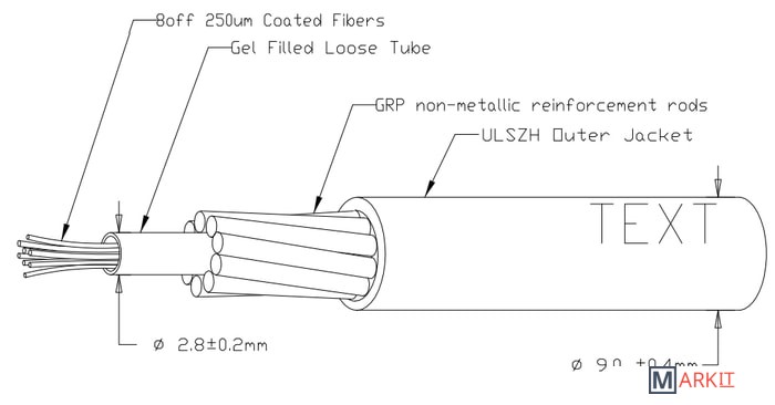 Оптоволоконный кабель, 8-волоконный, 50/125 OM2.Максимальная потеря 3.5/1.0 дб/км (850/1300 нм).Пропускная способность 500/500 (850/1300 нм).