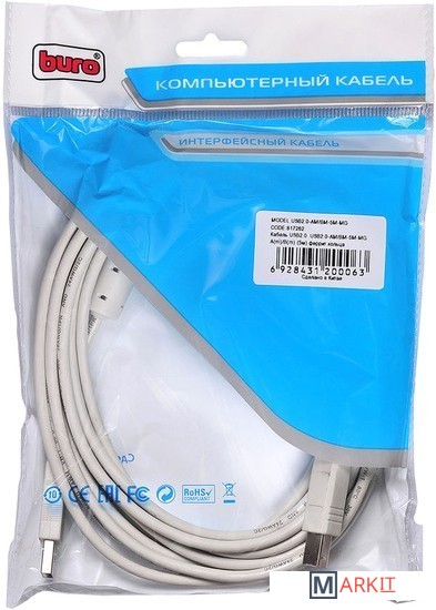 Markit » Кабели, адаптеры, разветвители » Кабель Buro USB2.0-AM/BM-5M-MG